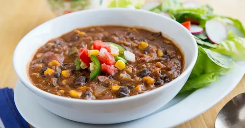 A traditional Mexican stew made with tender pork shoulder, hominy, and rich red chile broth, garnished with fresh toppings for a comforting, flavorful dish.