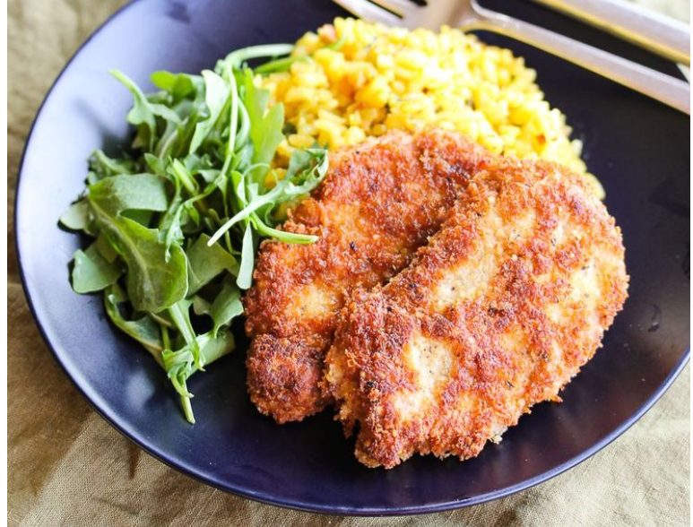 Paprika Cream Sauce / Or Mushroom Marsala / Argula Salad / Frisee Lettuce / Tomato / Red Onion / Roasted Pine Nuts / Lemon Vinaigrette.
