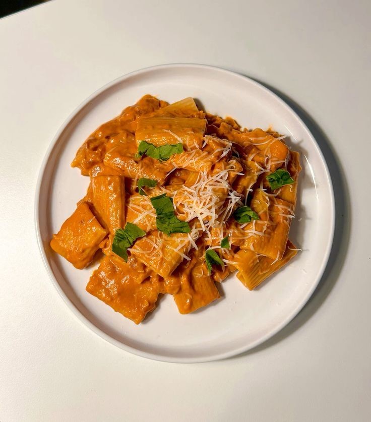 W Chicken or Shrimp (Optional) / Rigatoni Pasta / Vodka Sauce / Fresh Basil / Parmesan Shredded.