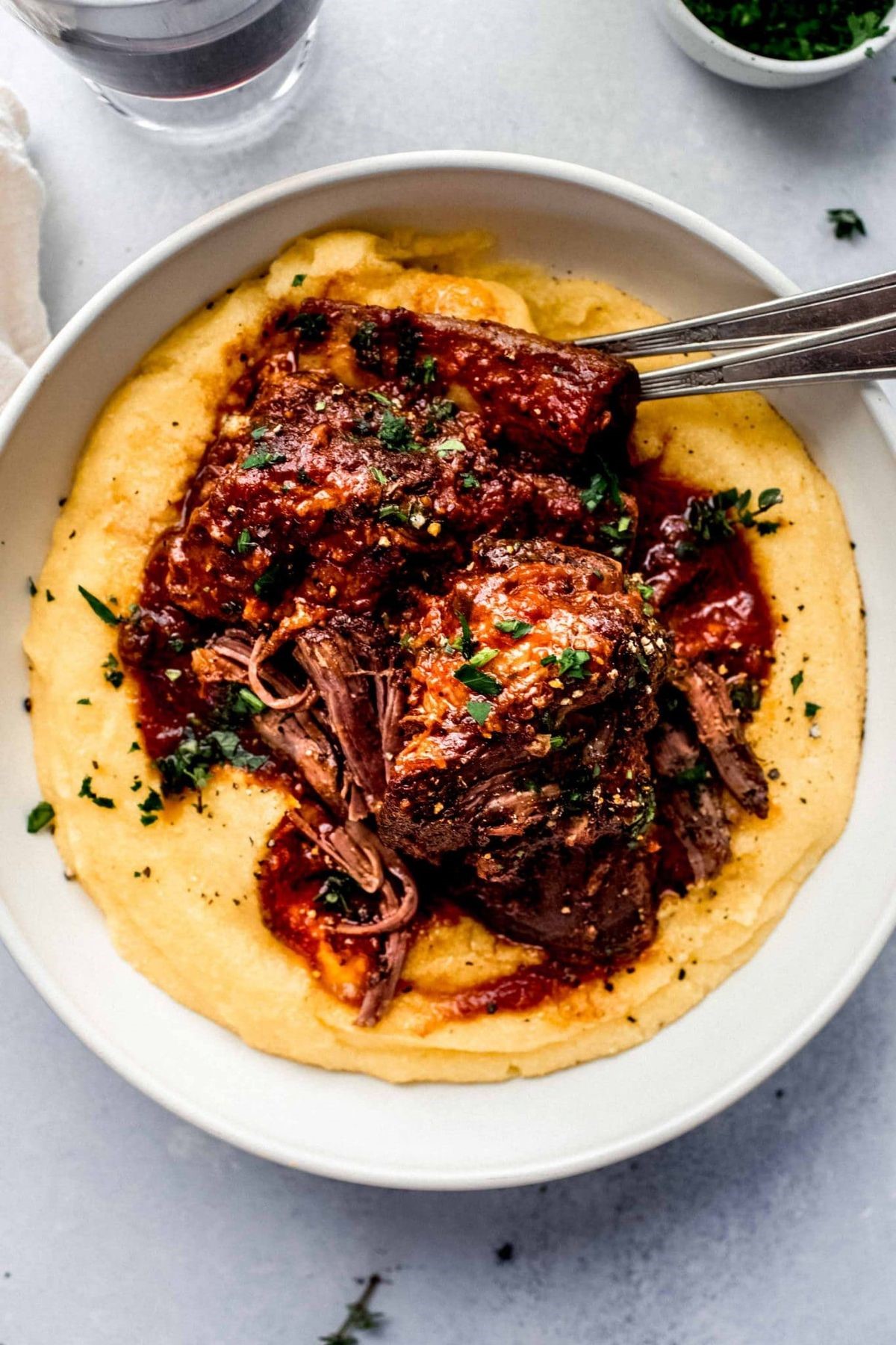 Fall-off-the-bone tender ribs, slow-cooked and glazed with bold, flavorful seasoning or sauce.